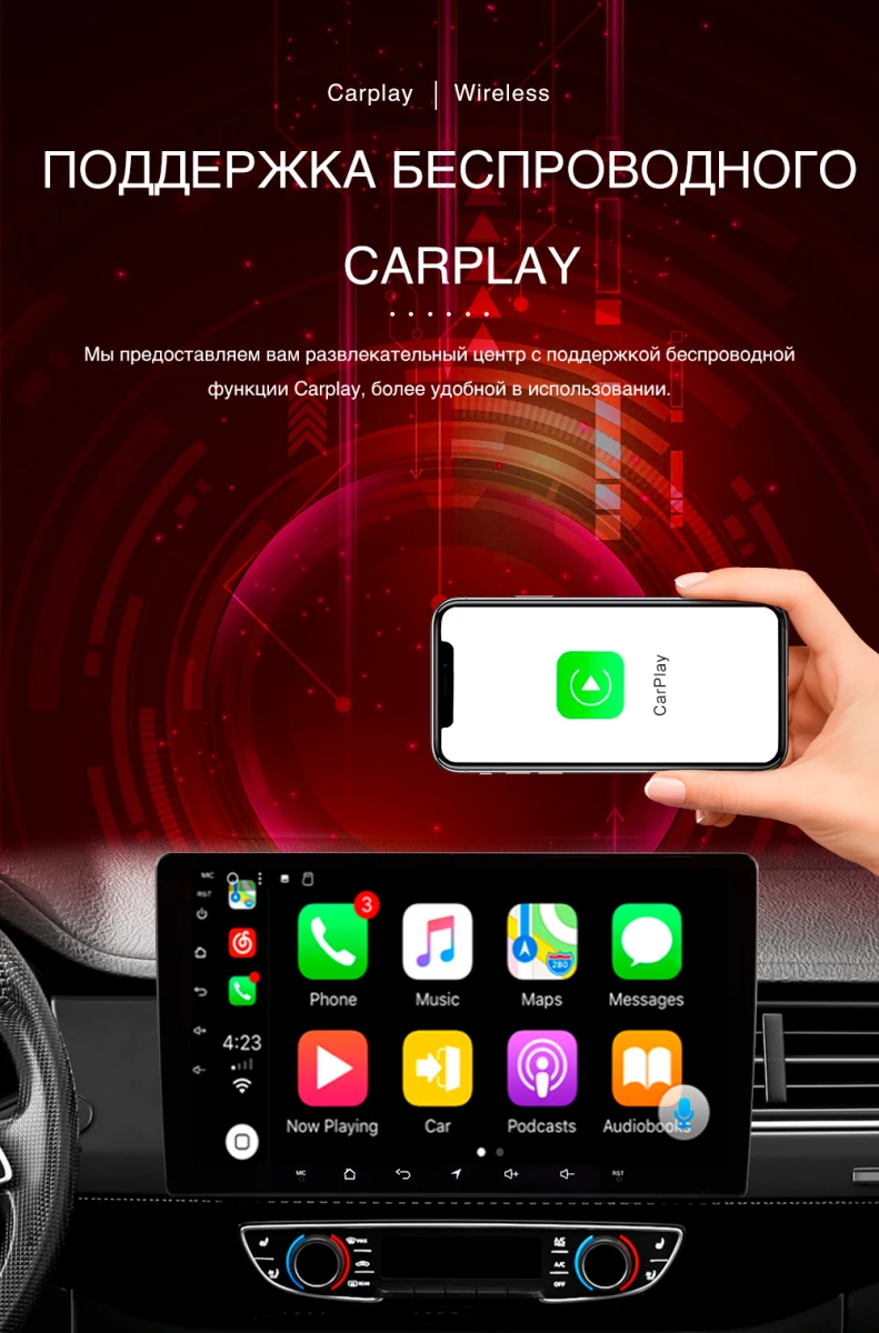 Андроид-блок для авто с штатным проводным CarPlay - Radiola RDL-Carplay на Android 13, 4G-SIM, подключение по USB