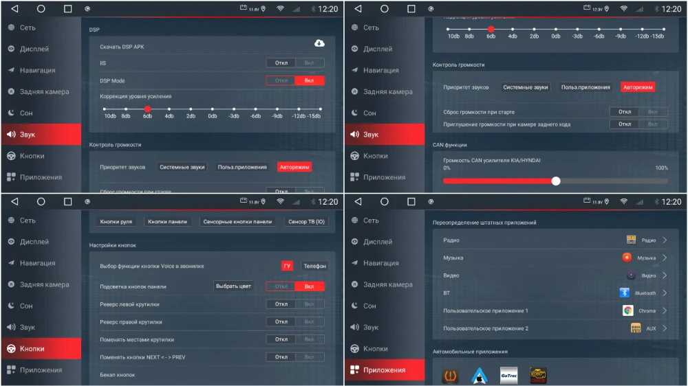 ⚡ При подключении сторонних процессоров по оптике звук может регулироваться с кнопок руля авто или автомагнитолы (переключатель в приложении RP DSP)